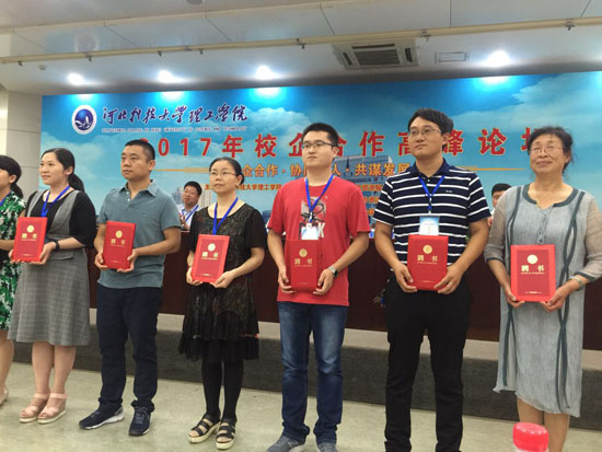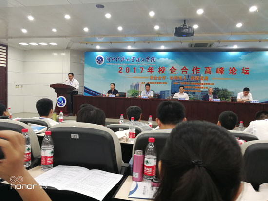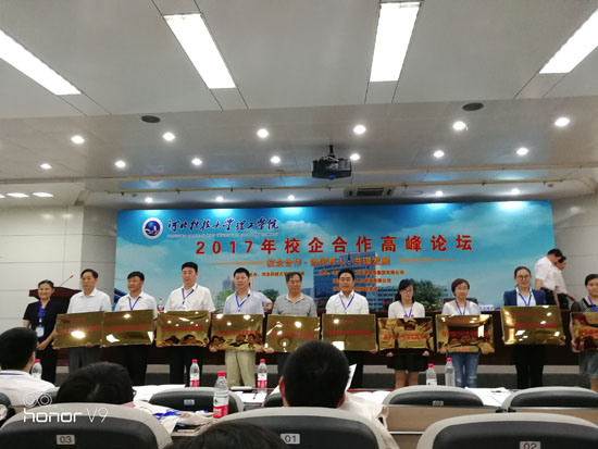 | 河北科技大學(xué)理工學(xué)院成立于2001年,是經(jīng)河北省人民政府批準(zhǔn)、教育部首批確認(rèn),由河北科技大學(xué)舉辦的全日制本科層次獨(dú)立學(xué)院,是河北省首批應(yīng)用轉(zhuǎn)型發(fā)展試點(diǎn)高校。 2017年6月2日在河北科技大學(xué)學(xué)術(shù)報告廳召開了以“校企合作、協(xié)同育人、共謀發(fā)展”為主題的校企合作高峰論壇會議。 會上我公司被河北科技大學(xué)理工學(xué)院確定為“校企聯(lián)合培養(yǎng)實踐基地”,并授牌,會上我公司董事長劉占查和編譯部主任強(qiáng)紅心還被聘請為“校企聯(lián)合培養(yǎng)指導(dǎo)老師”,并頒發(fā)了聘書。