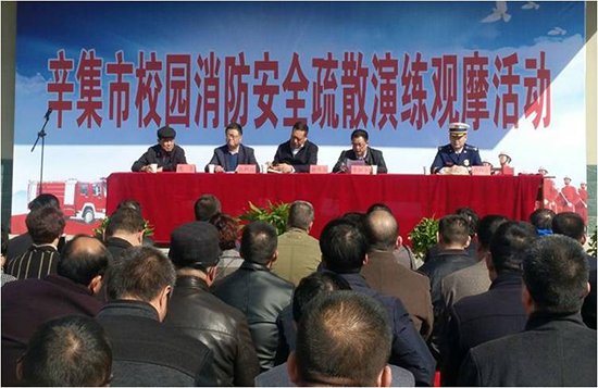 參加本次活動(dòng)的有辛集市教育局黃興君局長(zhǎng)、趙樹(shù)山副局長(zhǎng),應(yīng)急事務(wù)管理局辛彥卜局長(zhǎng),辛集市消防大隊(duì)盧保龍大隊(duì)長(zhǎng),消防專家沈文教授。還有各學(xué)區(qū)總校長(zhǎng)、直屬學(xué)校和民辦學(xué)校校長(zhǎng);各學(xué)區(qū)、直屬學(xué)校、民辦學(xué)校主管安全副校長(zhǎng);各初中校長(zhǎng)、主管安全校長(zhǎng);全市完小校長(zhǎng)、主管安全副校長(zhǎng)共計(jì)230余人及新壘頭鎮(zhèn)中學(xué)的1100多名師生。