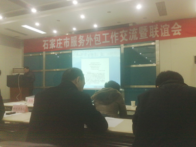 2012年1月17日,石家莊市商務(wù)局在市高新區(qū)西區(qū)金石工業(yè)園舉辦全市服務(wù)外包工作交流暨聯(lián)誼會。出席會議的嘉賓有:省外匯局、市委宣傳部、市財政局、市工信局、市科技局、市教育局、市文廣新局、市人社局、市商務(wù)局及市內(nèi)五區(qū)商務(wù)局領(lǐng)導(dǎo)。作為市重點(diǎn)服務(wù)外包企業(yè)代表,我公司董事長劉占查出席了會議并重點(diǎn)發(fā)言。