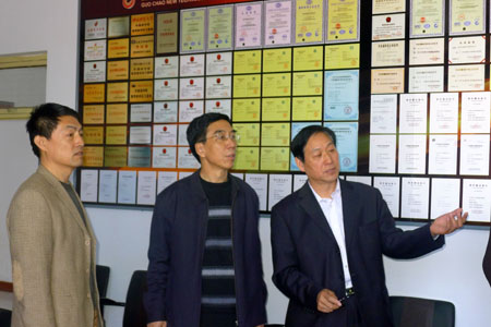 2012年4月13日上午,石家莊市工業(yè)和信息化局副局長(zhǎng)張慶緒、人才處副處長(zhǎng)李穎民、王剛,由辛集市工業(yè)和信息化局長(zhǎng)王忠禮、副局長(zhǎng)蘇化楹、民營(yíng)管理辦公室主任劉義強(qiáng)陪同,來(lái)我公司進(jìn)行調(diào)研。工業(yè)和信息化局領(lǐng)導(dǎo)聽取了公司董事長(zhǎng)劉占查就國(guó)超公司和國(guó)超職業(yè)培訓(xùn)學(xué)校人才培訓(xùn)情況的匯報(bào),對(duì)公司及學(xué)校近年來(lái)在各方面取得的成績(jī)予以充分肯定,并對(duì)開展中小企業(yè)人才培訓(xùn)規(guī)劃及設(shè)想提出了寶貴的建議。