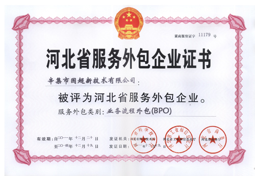 我公司被評定為"河北省服務外包企業(yè)"(證書)