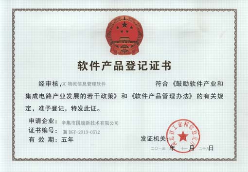 2013年11月29日,我公司研發(fā)的GC物流信息管理軟件、GC汽車圖檔管理軟件、GC汽車4S店客戶信息管理軟件順利通過河北省軟件評測中心評測,并獲得了河北省工業(yè)和信息化廳頒發(fā)的軟件產(chǎn)品登記證書。