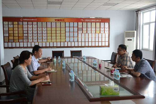 2015年6月23日上午,河北省科技廳高新處孫東偉、河北科技投資集團(tuán)有限公司副總經(jīng)理寧秋江由辛集市科技局副局長趙松巖陪同,來我公司調(diào)研。公司董事長劉占查、總經(jīng)理曹艷爽帶領(lǐng)他們觀看了公司榮譽(yù)室、工作廳、培訓(xùn)學(xué)校,雙方對公司未來發(fā)展及建設(shè)辛集市眾創(chuàng)空間進(jìn)行了親切融洽的座談交流。